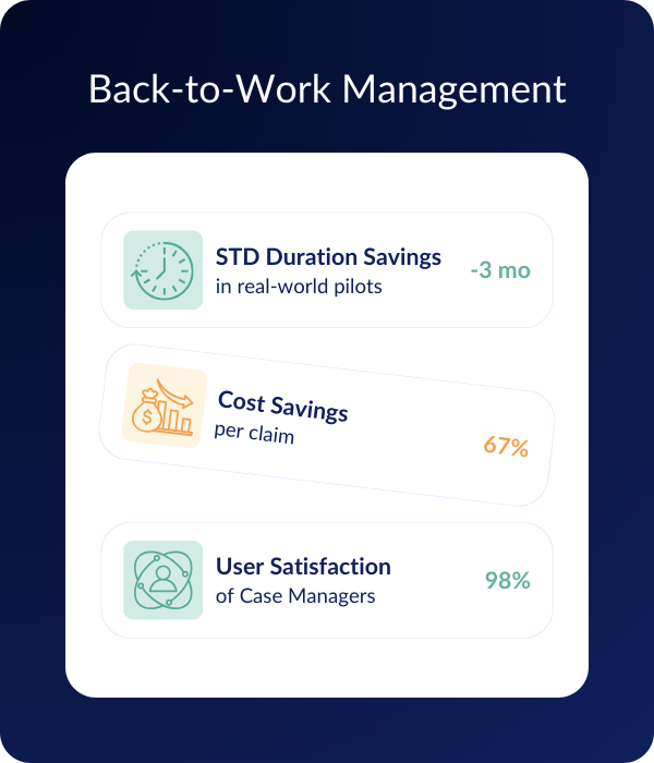 Actic cut Short-Term Disability (STD) duration by 3 months in real-world pilots. Delivered 67% per-claim cost savings and minimal Long-Term Disability (LTD) conversions.